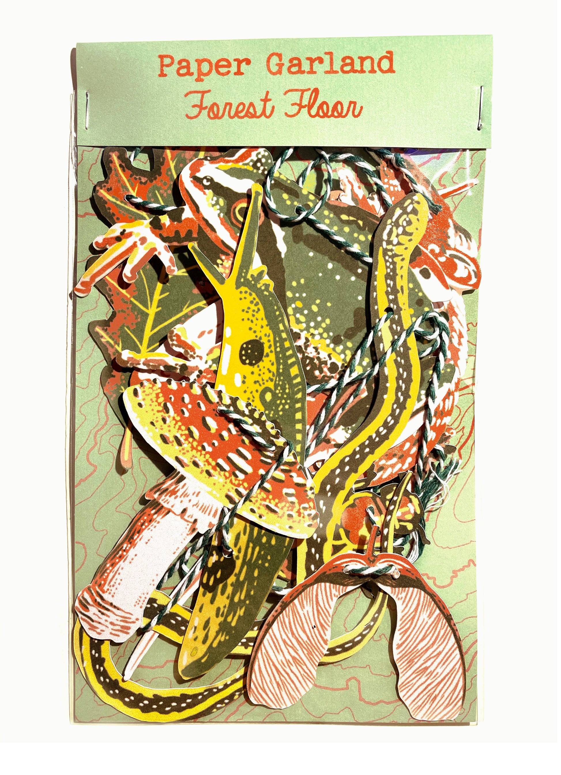 This paper garland is approximately 7 ft long, and features species that live on the forest floor, such as mushrooms, frogs, snakes and slugs. It is recommended for indoor use only, and gentle care is recommended when unravelling and hanging. Comes in packaging. String colour may vary.