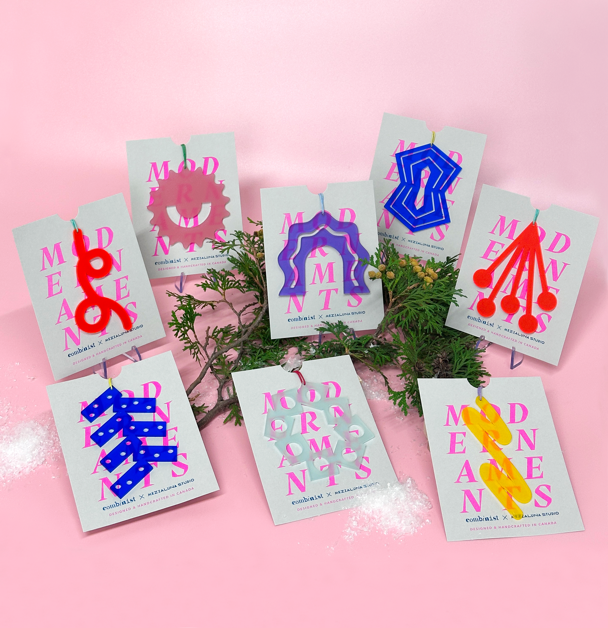 Holiday ornaments for the modernists in your life - these are part ornament, part modern art! In eight playful, geometric and unexpected shapes, the modernaments toss in a fresh twist on tradition. Keep them on your tree, or let them brighten your spaces all year long.