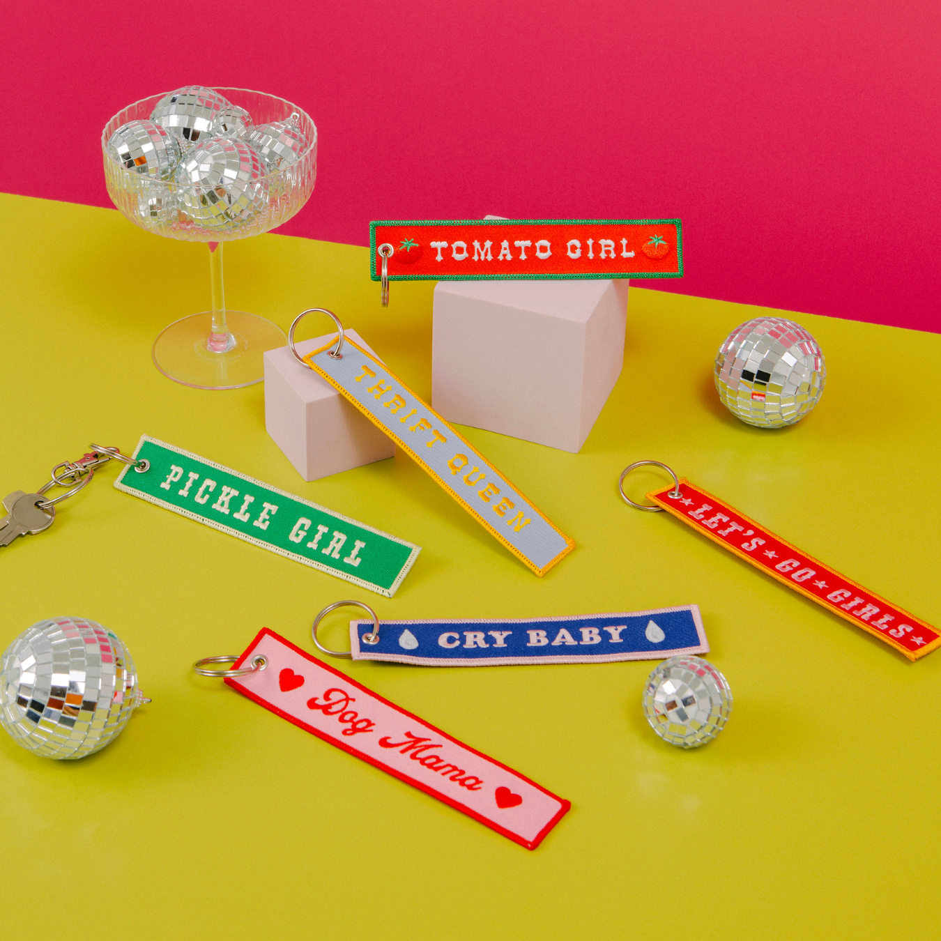 A bold little tag for keys, bags, or backpacks. Made from sturdy woven nylon with crisp double-sided embroidery, this keychain adds just the right pop of personality to your everyday carry. Details: ✿ Measures approx. 6.3" x 1.2" (16 cm x 3 cm) ✿ Embroidered on heavy-duty nylon ✿ Double-sided design with clean edge stitching ✿ Includes metal grommet + split keyring ✿ Packaged without plastic ✿ Designed in Ontario, made in China