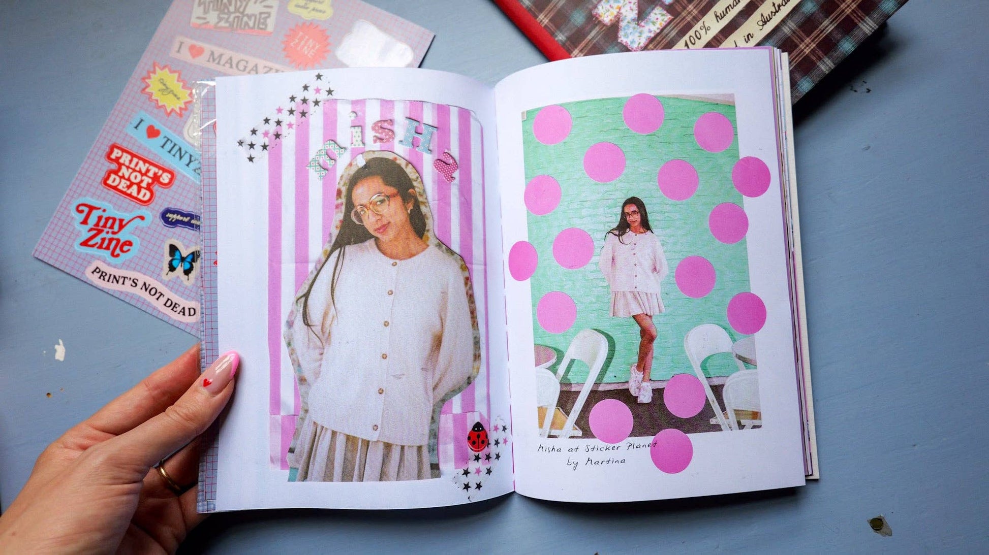 TINY ZINE IS HERE! Every 70-page copy of TZ2 includes: ⭐️ Special edition TZ stickersheet (to proudly show off your support for indie print media) ⭐️ Advice from designers, music artists and creatives from our community ⭐️ Small business, music & book recommendations ⭐️ Thoughtful, long-form essays to take your time with (because contrary to what the world wants us to think, we DO have the time and attention span) ⭐️ Pages of handcrafted analogue artworks by our community for inspiration ⭐️