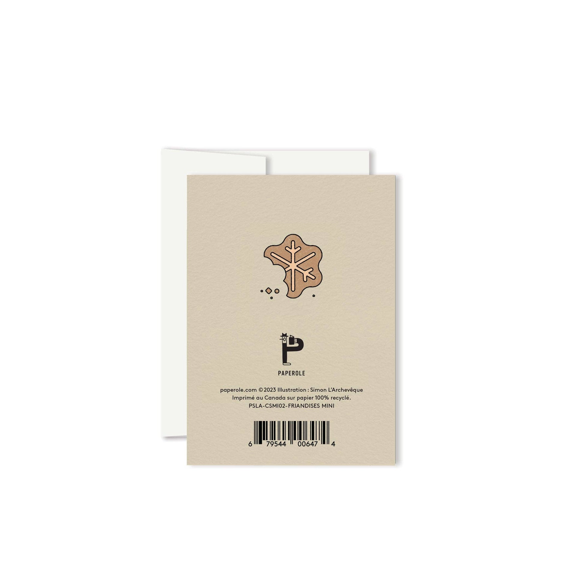 Mini greeting card Format: 2.75" x 3.75" White envelope (colour may vary) Blank interior Printed in Montreal (Canada) on uncoated FSC paper. Illustration by Simon L’Archevêque.